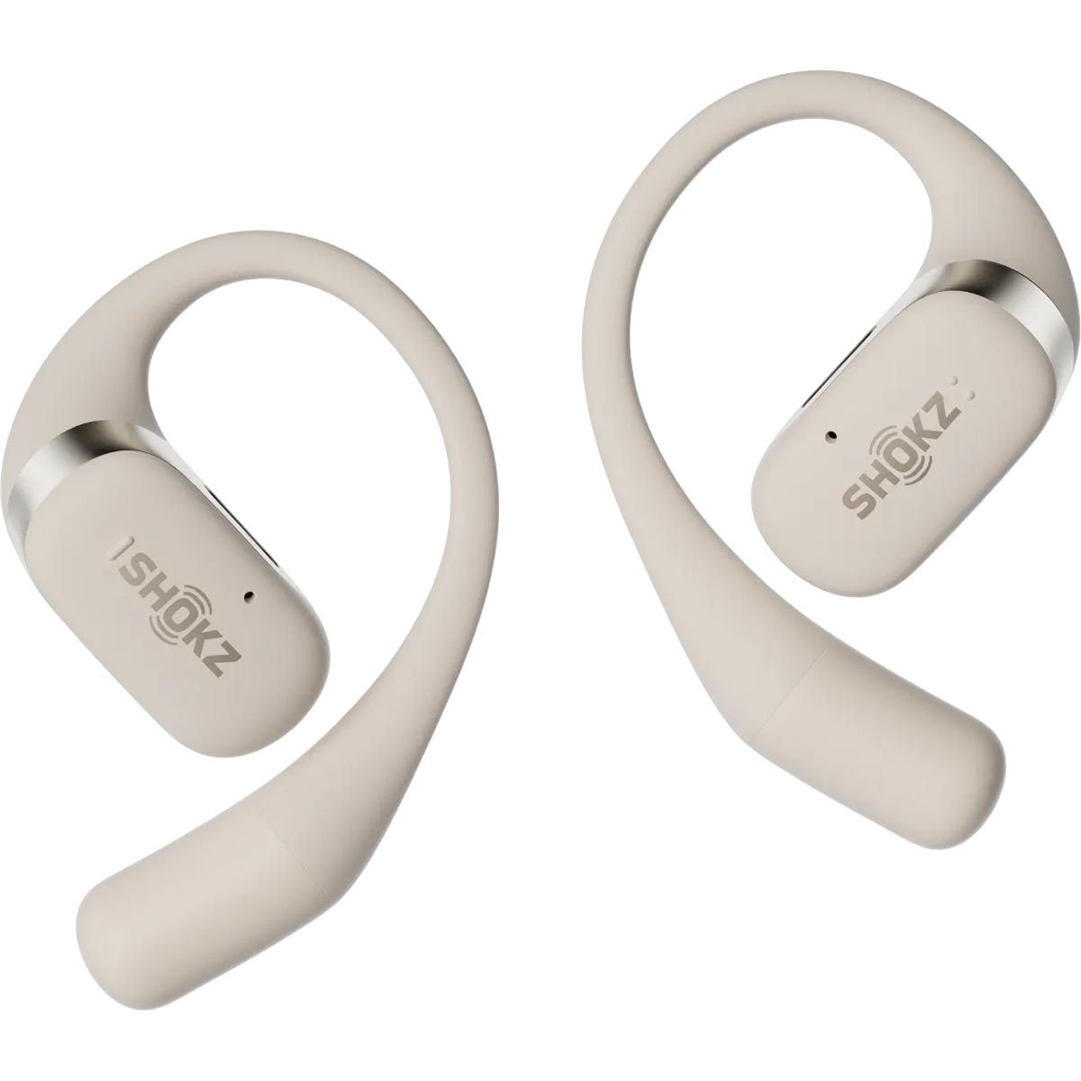Shokz OpenFit beige sport koptelefoon is een wireless hoofdtelefoon met DirectPitch™ technologie die de wereld van de wireless oordopjes voorgoed zal veranderen!