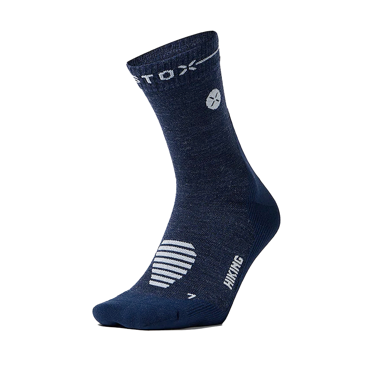 STOX Hiking enkel Outdoor Trail wandel sokken (Donkerblauw/Lichtgrijs) voor heren zijn enkel compressiekousen met thermoregulerend Merino wol erin verwerkt. Ze hebben gerichte compressie om de enkelstabiliteit op ruig terrein te verbeteren.