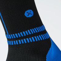 STOX Running Socks black/blue heren zijn compressiekousen die de ideale ondersteuning bieden om langer te kunnen hardlopen en sneller te herstellen. Door het gebruik van degressieve compressietechnologie stimuleren deze sokken de bloedsomloop, wat het risico op scheenbeenklachten en vermoeide spieren aanzienlijk vermindert.