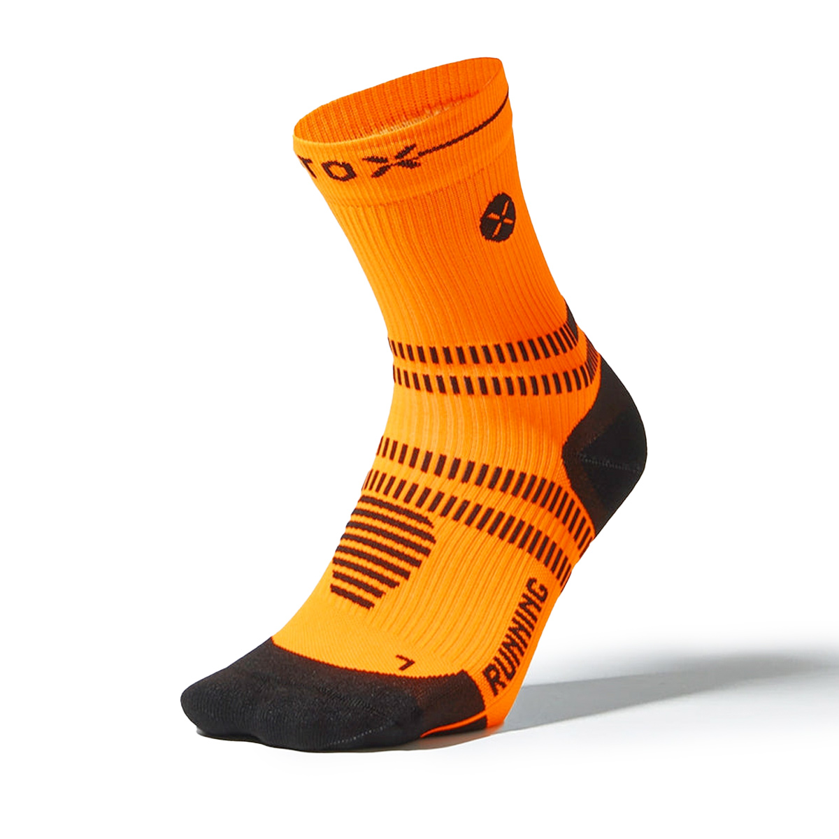 De Stox Energy sokken Running Ankle (Orange Fluo/Black) voor dames bieden je enkels en voeten gerichte ondersteuning tijdens intensieve sporten.