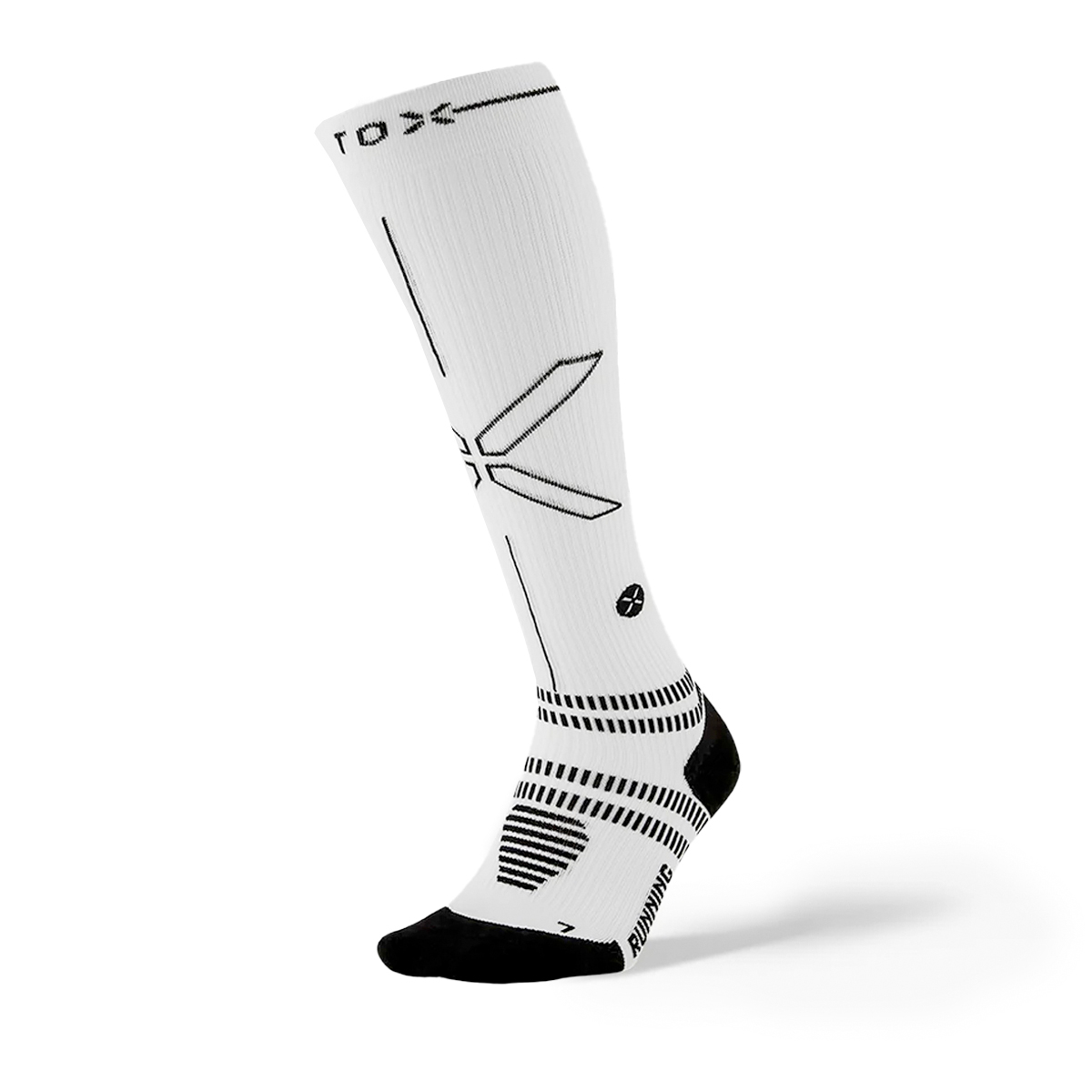Deze Stox Energy sokken Running (White/Black) voor heren bieden je onderbenen gerichte ondersteuning tijdens intensieve sporten. Deze running sokken hebben een verdikt teen- en hielstuk voor extra comfort.