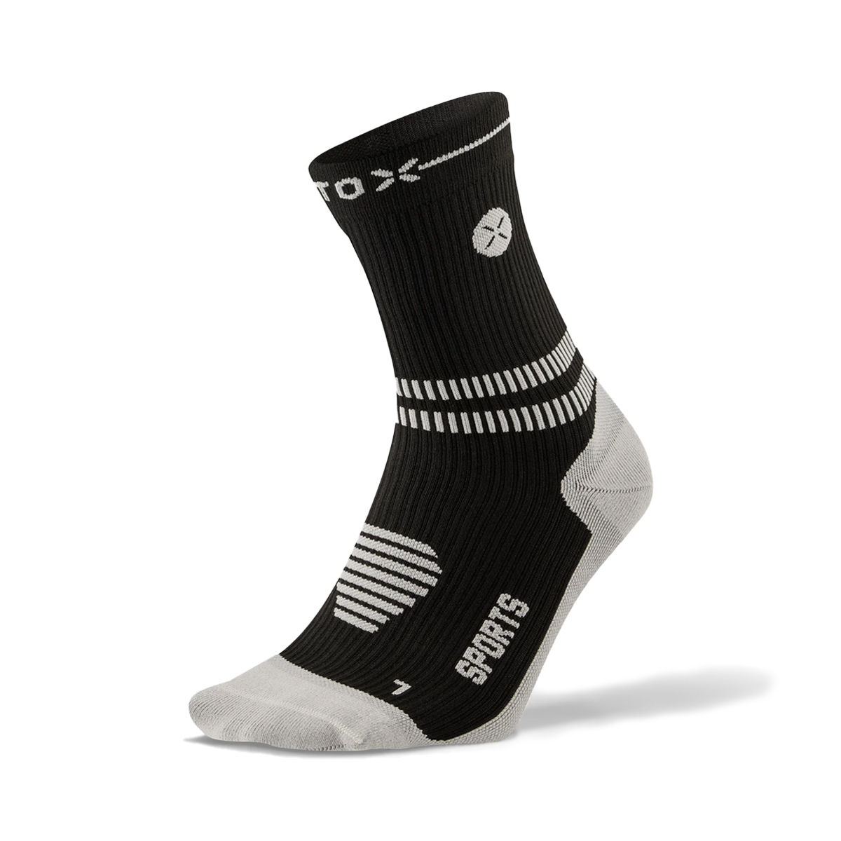 Stox Sport sokken Running Ankle (Black) heren zijn multi sport sokken die risico op blessures verminderen en gerichte compressie en stabiliteit aan de enkels bieden. Met een verdikt voetbed dat voor een aansluitende pasvorm zorgt en minder wrijving geeft. Geschikt voor alle sporten!