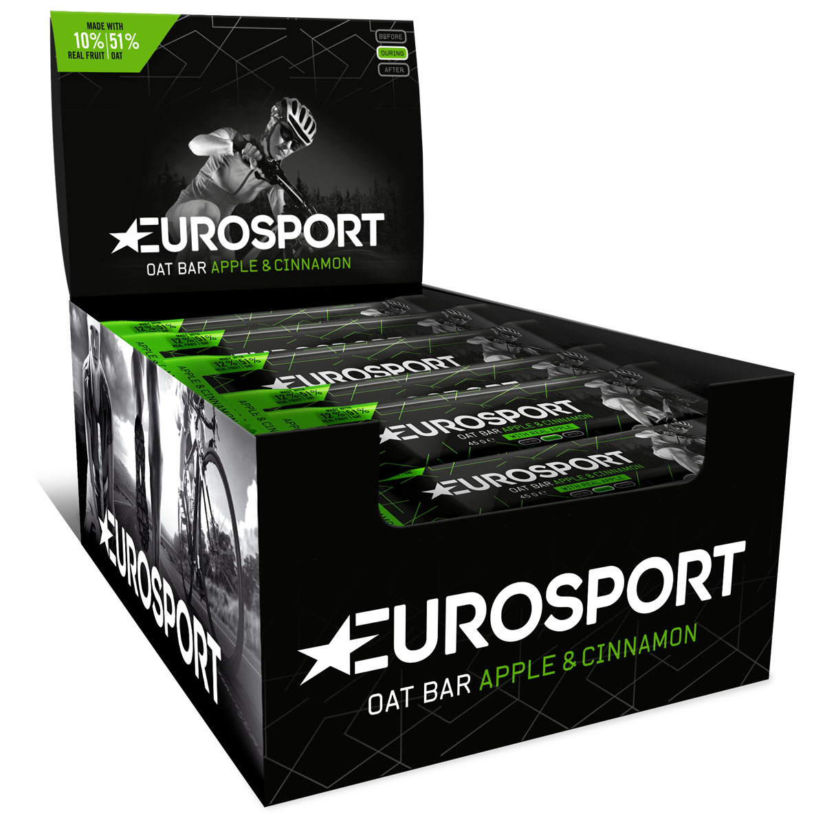 De Oat Bar is een van de twee reepsoorten van Eurosport nutrition. Deze heeft in de basis twee gezonde, natuurlijke voedingsstoffen: havermout en echt fruit. De apple & cinnamon variant bevat 51% haver en 10% fruit.