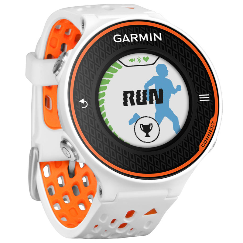 De nieuwe Garmin Forerunner 620 in de kleur wit/oranje is een GPS hardloophorloge met hartslagmeting. Het het horloge houdt afstand, tempo en hartslag bij en is door zijn hoge resolutie kleurenscherm goed afleesbaar.