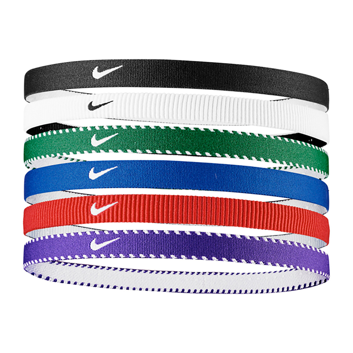 Deze Nike haarband Flex 6-pack (Game Royal/University Red/White) is gemaakt van elastische polyester stof en zorgt ervoor dat je haar niet voor je ogen hangt tijdens het sporten. De siliconen anti-slip randen houden de band goed op zijn plek.