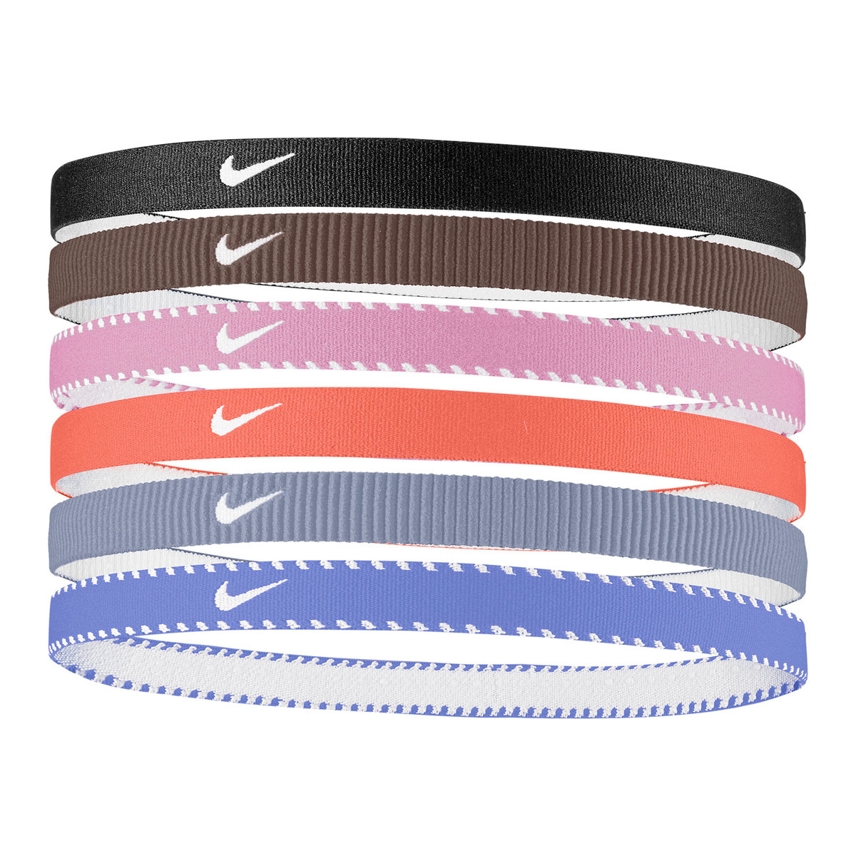 Deze Nike haarband Flex 6-pack is gemaakt van elastische polyester stof en zorgt ervoor dat je haar niet voor je ogen hangt tijdens het sporten. De siliconen anti-slip randen houden de band goed op zijn plek.