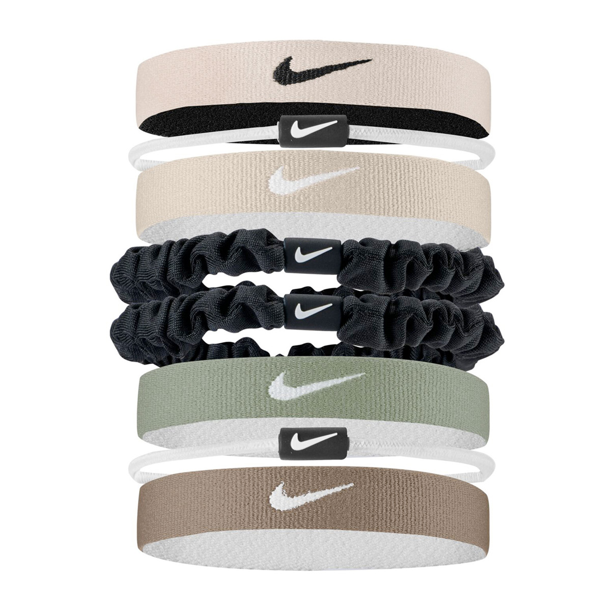 Deze Nike haarband Flex Hair Ties 8-pack is gemaakt van elastische polyester stof en zorgt ervoor dat je haar niet voor je ogen hangt tijdens het sporten.