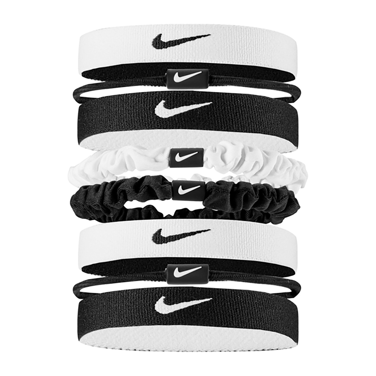 Deze Nike haarband Flex Hair Ties 8-pack is gemaakt van elastische polyester stof en zorgt ervoor dat je haar niet voor je ogen hangt tijdens het sporten.
