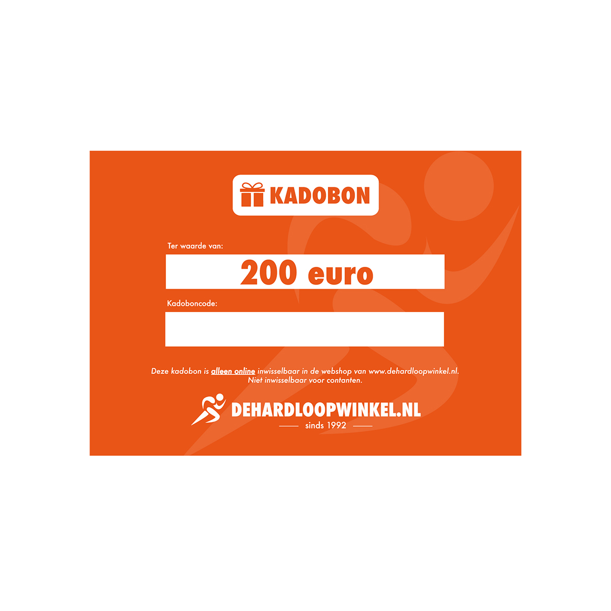 Digitale Kadobon ter waarde van €200,- alleen ONLINE inwisselbaar, niet geldig in de winkels.