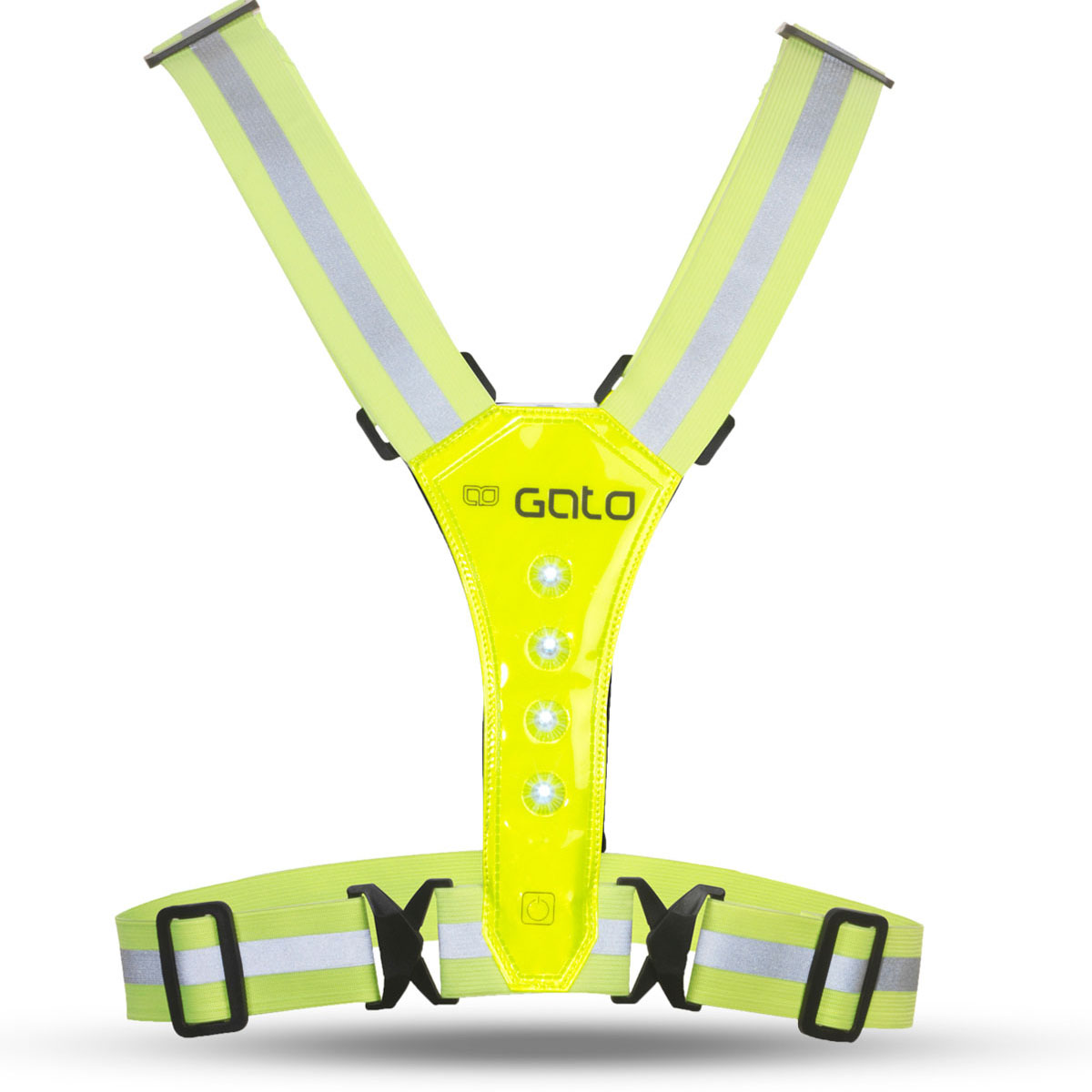 De schouderbanden zijn ruim verstelbaar en elastisch, ze zullen je kroost niet belemmeren, en ze zijn voorzien van brede reflecterende banden. Op de voor- en achterzijde zit midden op de borst en rug een LED-strip waarvan de batterij vervangbaar is. Deze is d.m.v. een druk op de knop in twee verschillende standen te zetten en is continu en strobo-langzaam.