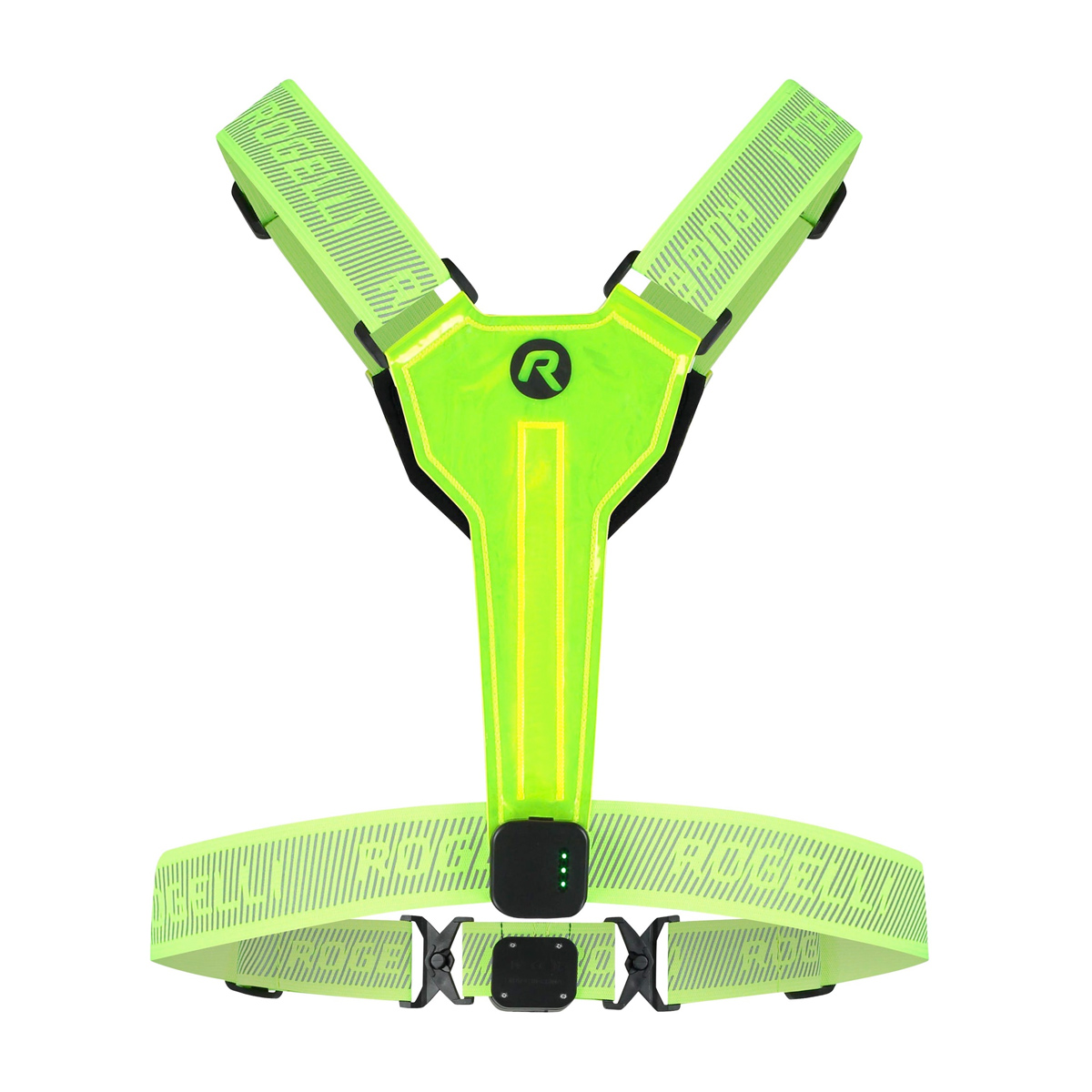 Het Rogelli reflectievest LED met USB is uitgerust met reflecterende details en LED-verlichting aan de voor- en achterkant. De lampjes zijn oplaadbaar met de meegeleverde kabel.