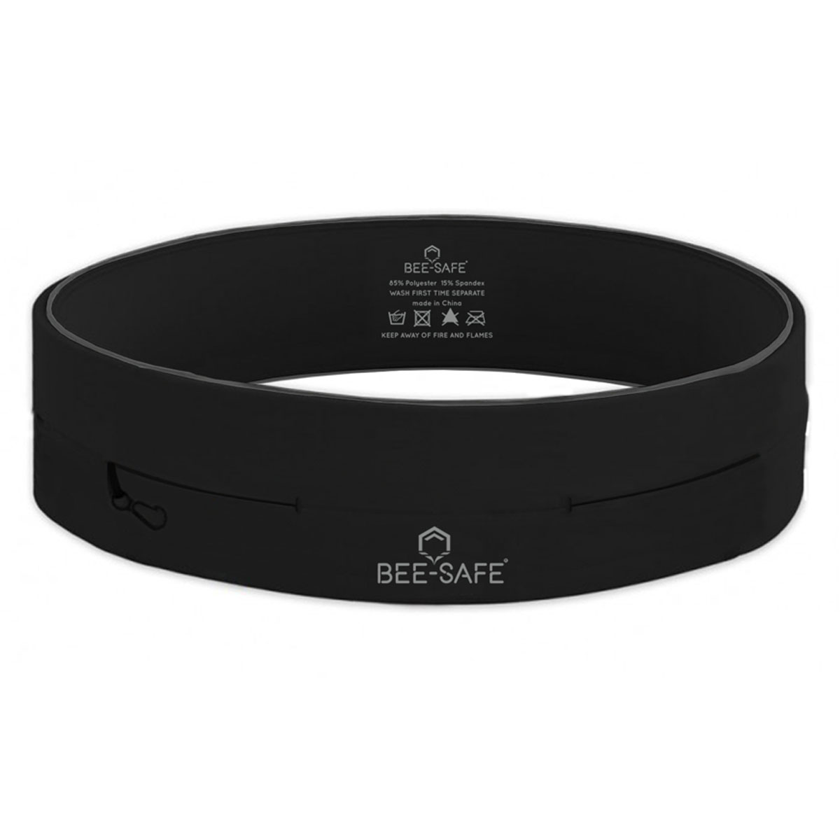 Bees Safe Smart Waistbelt zwart draag je over of onder je hardloopkleding bij het hardlopen. Handig voor het opbergen van de telefoon, voeding, sleutels of drinkfles.