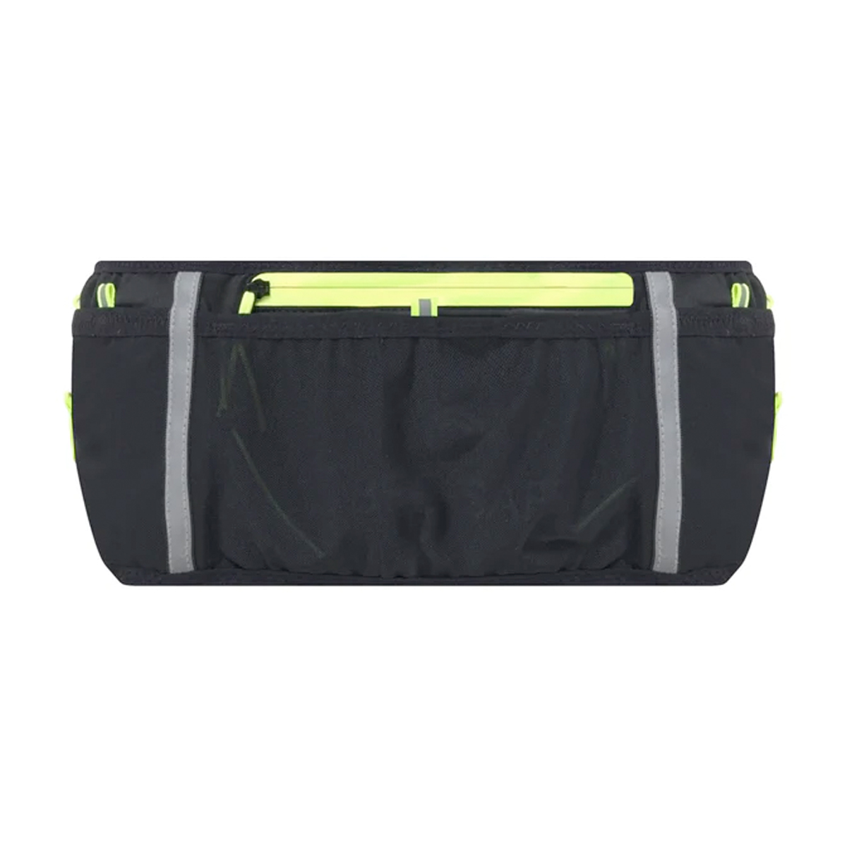 Bee Safe waistpocket (Black Lime) is een sport heupband met bijzonder veel opbergvakken voor meerdere gels (minimaal 6st), zo ook voor een grote telefoon (waterdichte zak). Deze sports heupband is verkrijgbaar in 3 maten:
