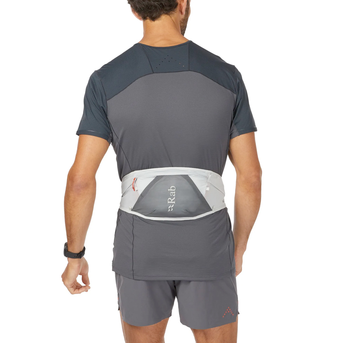 In deze Rab ultralichte running belt pack (Gargoyle/Graphene) kun je alles wat je nodig hebt bij hardlopen en wandelen of hiken in de bergen meenemen. De runningbelt is gemaakt van een sterk en ademend frame van Ripstop Mono Mesh materiaal en zal door zijn ergo pasvorm niet schuiven of irriteren.