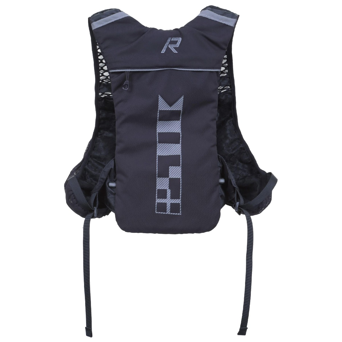 Aan de voorkant vind je twee grote steekzakken voor je soft flasks of bidons, plus twee afsluitbare ritsvakken voor je telefoon, sleutels of sportvoeding. Op de rug zit een groot vak dat ruimte biedt aan een waterzak van 1,5 tot 2 liter (niet meegeleverd) of een extra laag kleding.