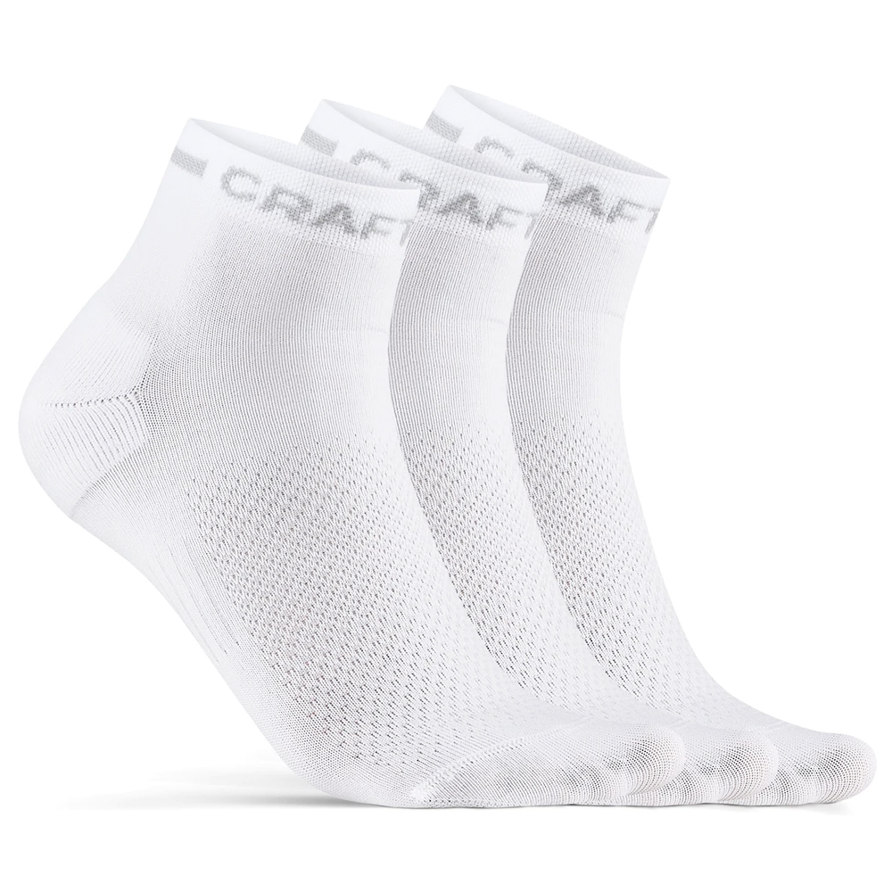 De functionele Craft Dry Mid witte hardloopsokken (3 paar) hebben een uitstekende vochttransport en ventilatie.