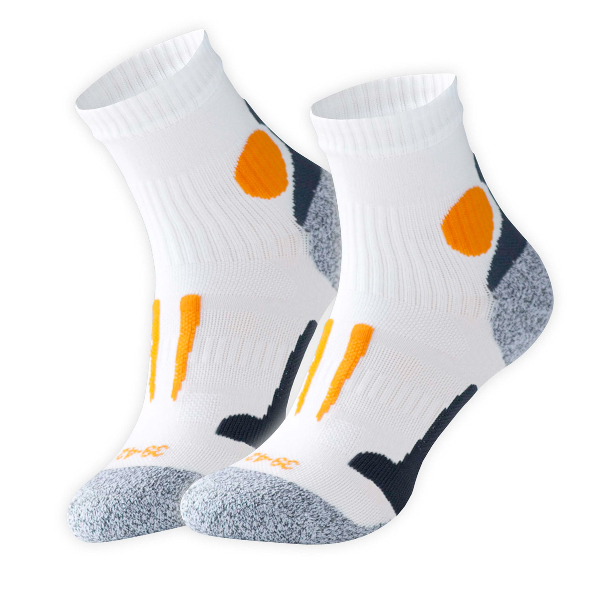 Deze comfortabele De Hardloopwinkel Performance Running Socks (White/Grey/Orange) houden je voeten koel en droog tijdens het sporten dankzij speciale ventilatiekanalen.