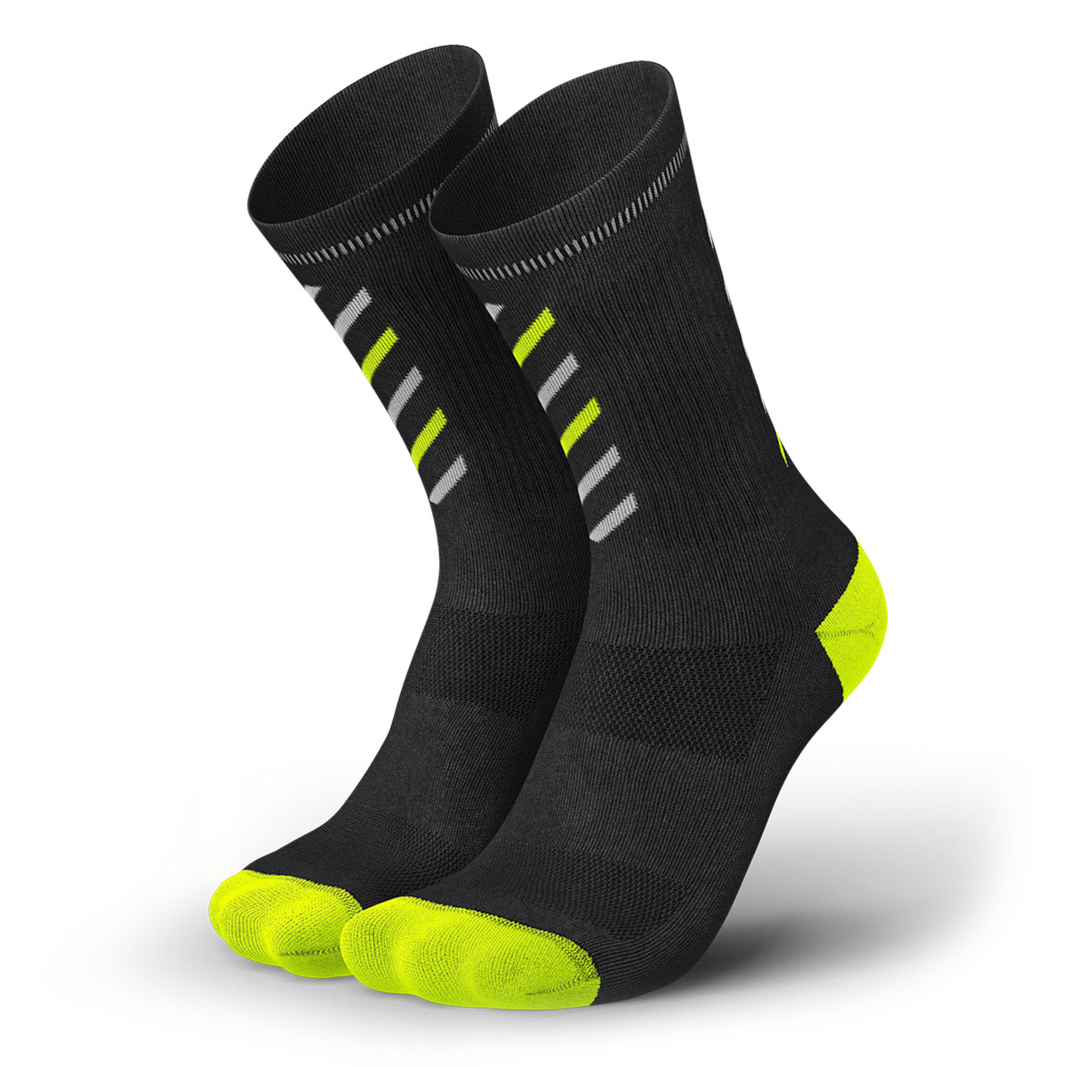 …De INCYLENCE Merino Rise grit/canary zijn hardloopsokken met Merino wol.
