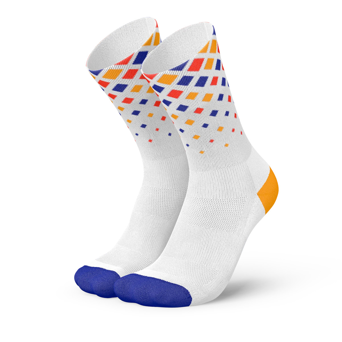 Incylence Running Crystals high-cut (White Purple Orange) sokken zijn gemaakt van Ultra Lichte Microlon® microvezels die het gevoel geven bijna niks aan te hebben bij hardlopen.