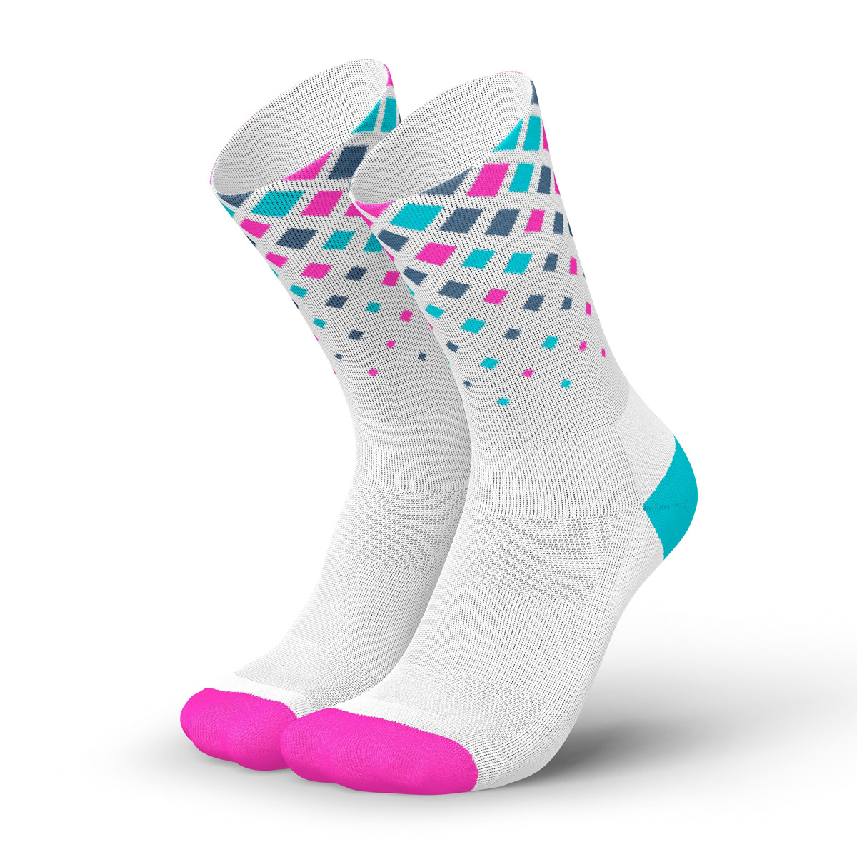 Incylence Running Crystals high-cut (White Pink Cyan) sokken zijn gemaakt van Ultra Lichte Microlon® microvezels die het gevoel geven bijna niks aan te hebben bij hardlopen.