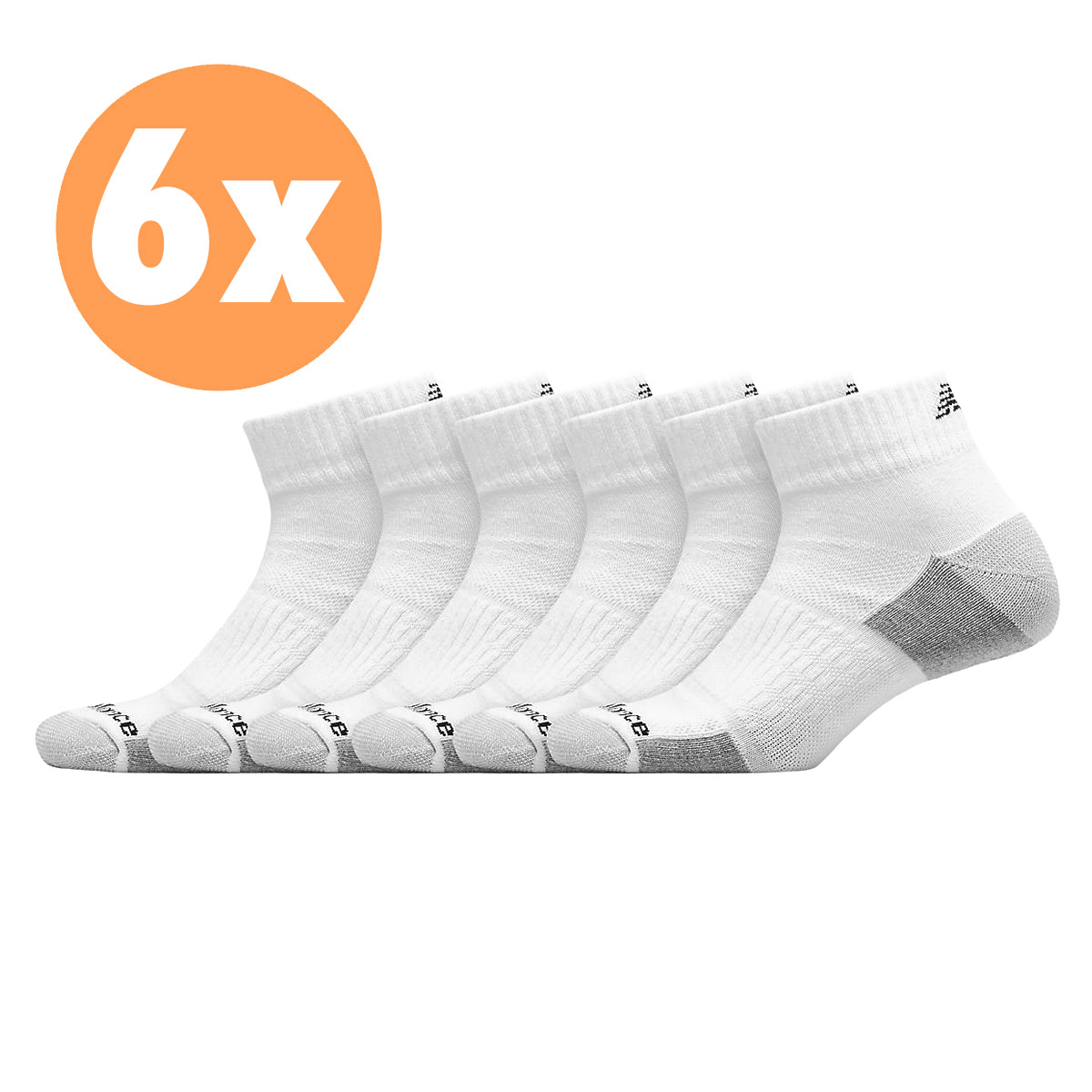De New Balance sok Cushioned Ankle 6 paar white met vochtregulerende NB DRY-technologie helpt de voeten koel te houden. Een doordachte boogconstructie biedt een aansluitende pasvorm die toch volledige bewegingsvrijheid toelaat. De enkelsokken hebben versterkte hielen en tenen voor duurzaamheid die bestand is tegen meerdere trainingssessies.