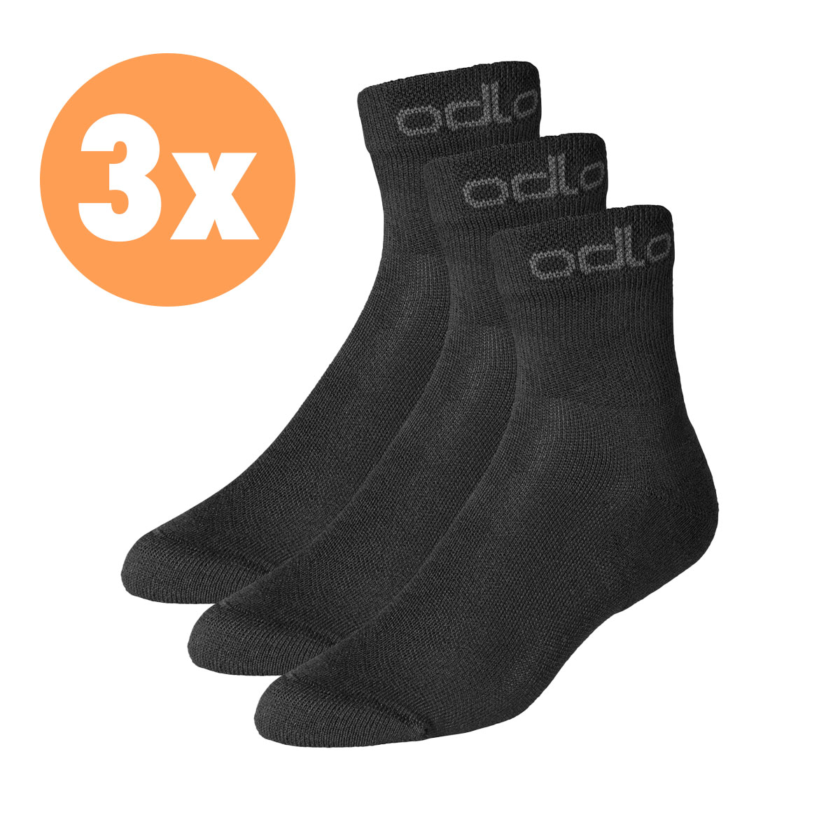 Deze 3 paar Odlo Sport Quarter hardloopsokken black zijn zacht en zeer ademend en geproduceerd in Europa.