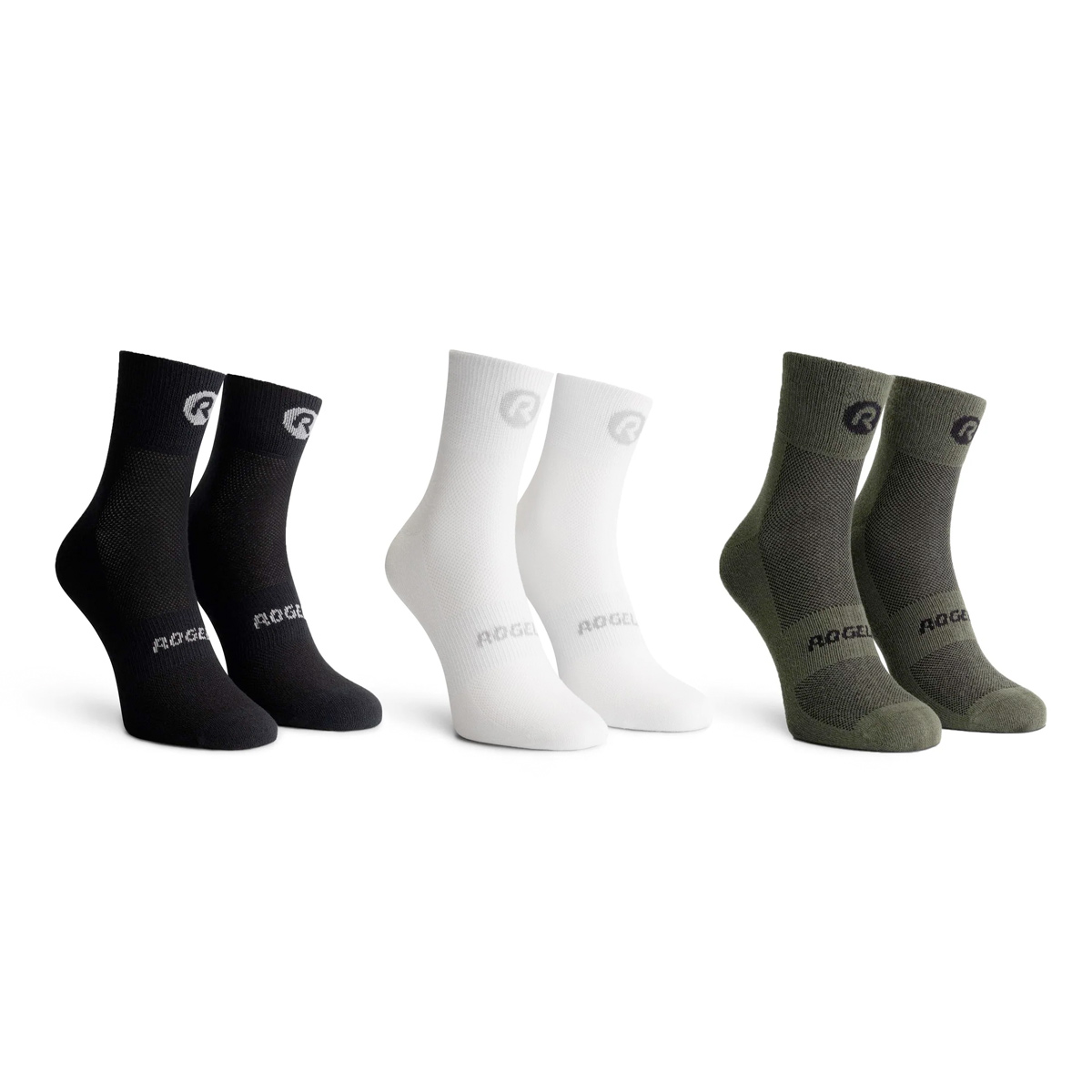 Rogelli sportsokken Core (zwart/wit/legergroen) 3 paar bieden optimaal comfort en prestatie bij diverse sporten zoals hardlopen, fietsen en fitness. Met naadloze tenen, Eco-coolmax geurvrije stof en een brede support band blijven je voeten fris en goed ondersteund. De verstevigde hiel en naadloze tenen zorgen voor een prettige irritatievrije pasvorm, terwijl de demping elke stap verzacht.