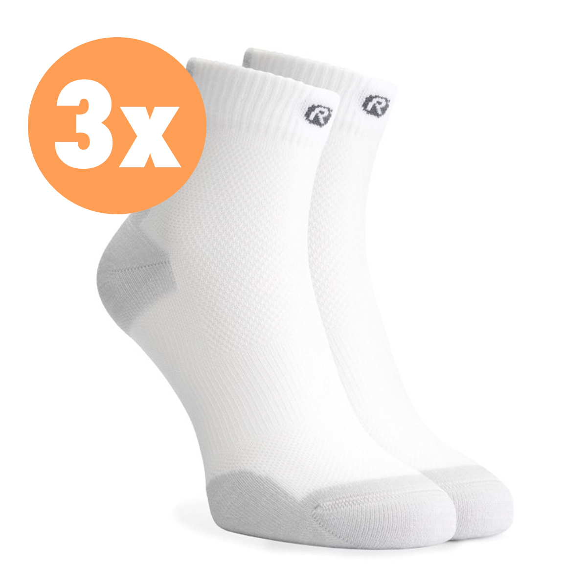 De Rogelli sokken Core white/grey 3 paar bieden optimaal comfort en prestatie. Met naadloze tenen en een mesh support band voor extra ventilatie blijven je voeten fris en goed ondersteund. De verstevigde hiel en teen zorgen voor een stevige pasvorm, terwijl de demping elke stap verzacht. Upgrade je hardlooproutine met deze sokken en ervaar comfort bij elke stap.
