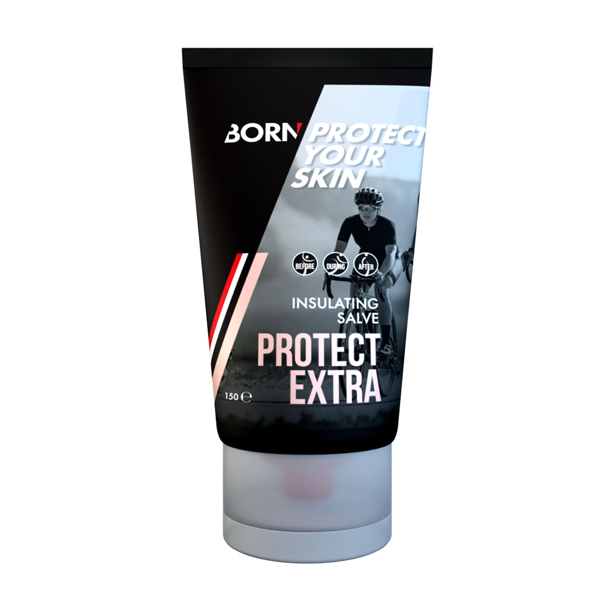 BORN Protect Extra is een sterk afdekkende vette creme voor bescherming van slecht doorbloede lichaamsdelen (voeten, knieen, pezen) tegen kou en regen. PROTECT EXTRA is watervrij en bevat matig verwarmende bestanddelen.