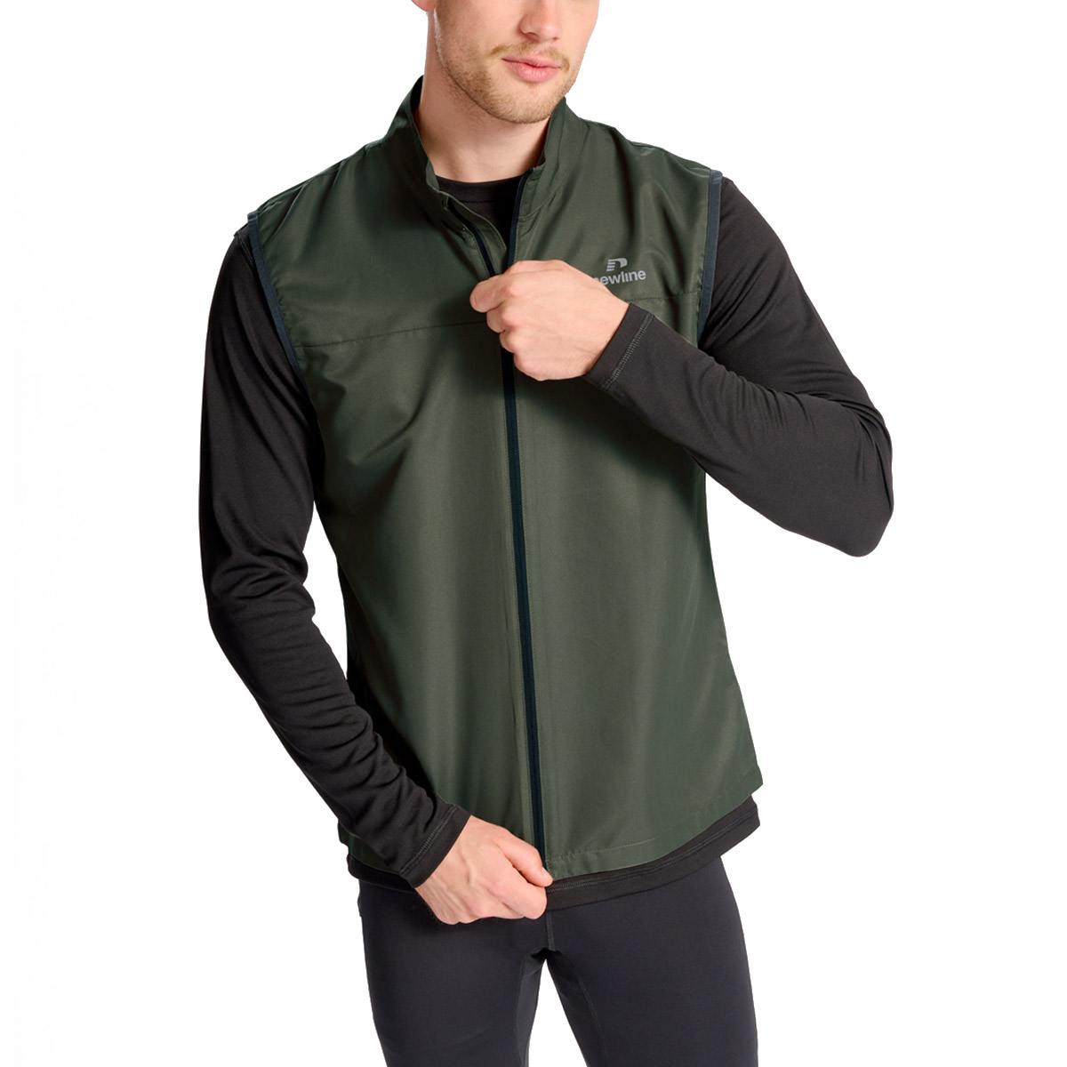 De Newline vest nwlBEAT green voor heren houdt je warm tijdens je training met een hoge kraag en uitstekende winddichte en waterafstotende eigenschappen. Deze veelzijdige top heeft een ritssluiting aan de voorkant en een handige achterzak met rits voor je kleine spullen. Het biedt een comfortabele en functionele pasvorm met elastische binding bij de armen. Op de voorkant bevindt zich een bedrukt logo en op de achterkant een print voor een verhoogde zichtbaarheid.