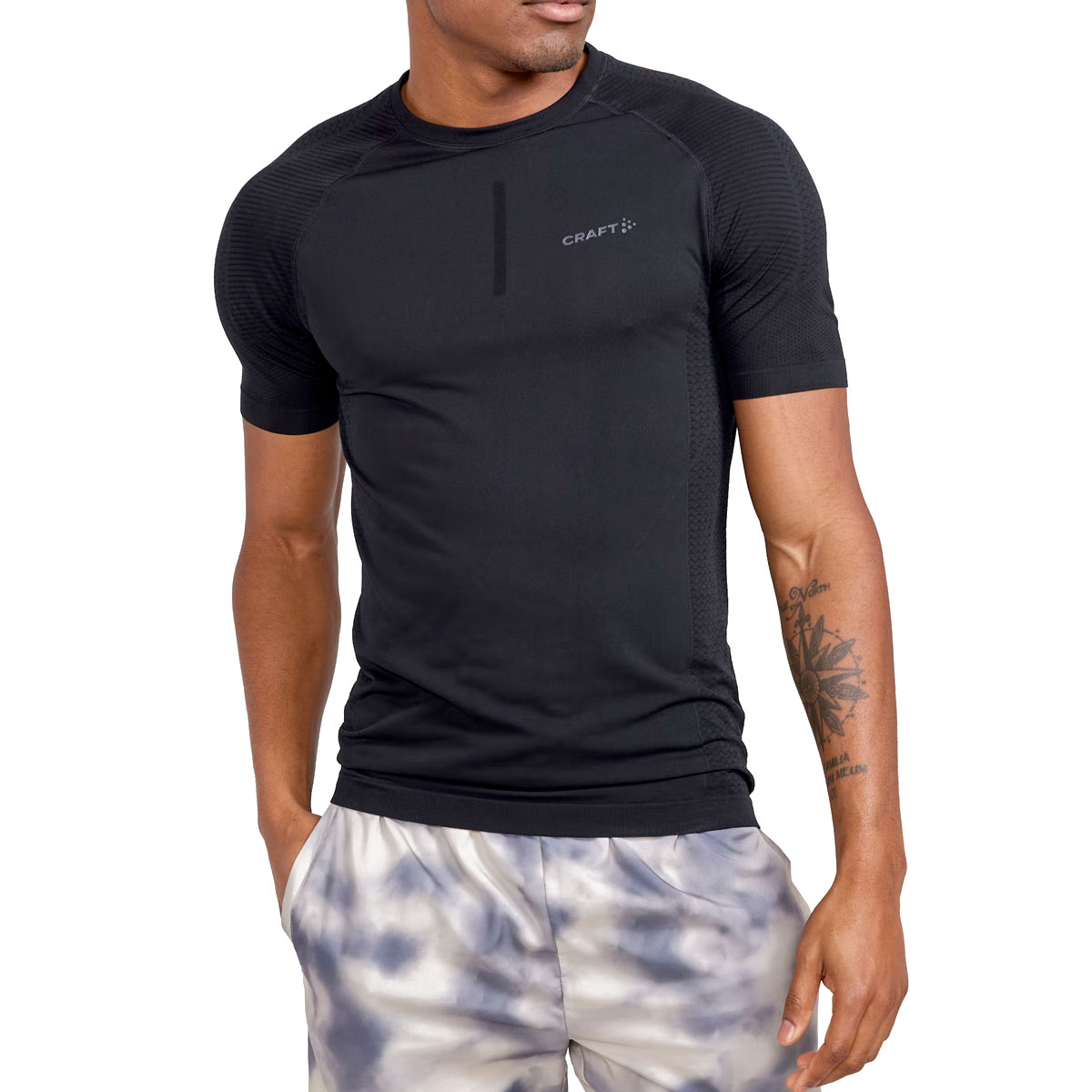 Craft duurzaam shirt korte mouw Dry ADV Cool intensity black voor heren is een verkoelend hardloopshirt en zorgt voor perfecte temperatuur regulatie. Gemaakt van zeer functionele duurzame polyester stof en heeft een naadloze constructie. Ideaal voor hardlopen op warme zomerdagen of sporten in de hitte.