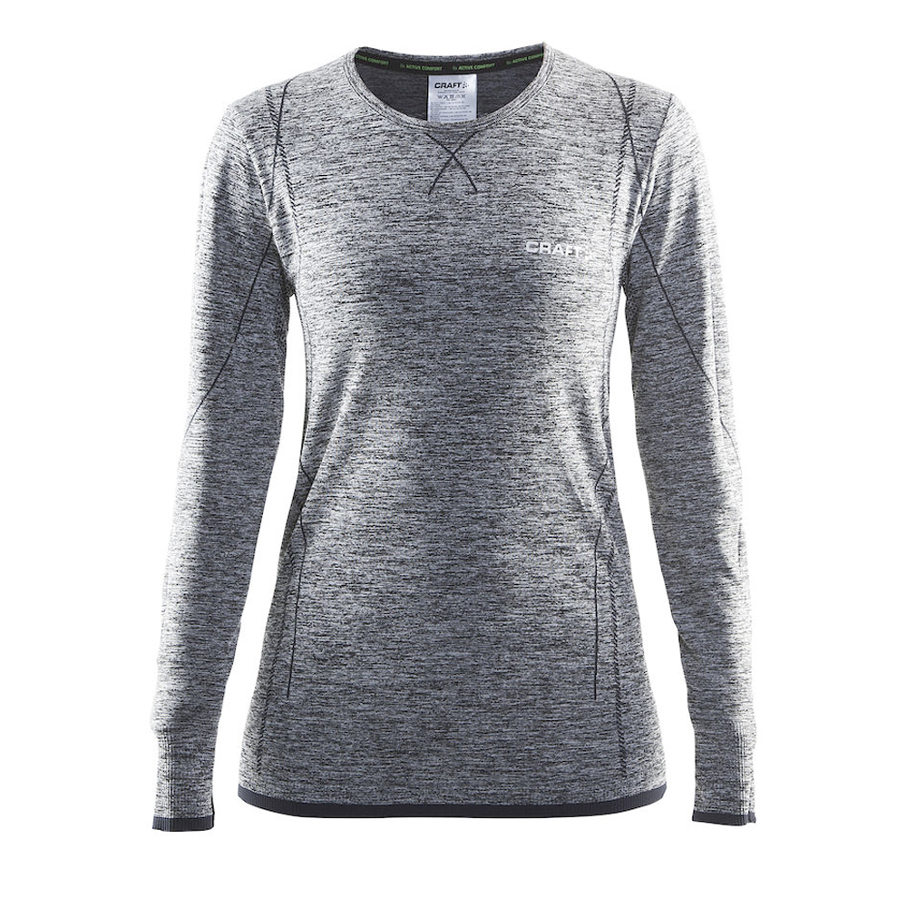 Craft shirt lange mouw Active black melange voor de dames heeft een zeer goede isolatie door holle vezel waardoor je lichaam warm blijft. Zeer snelle vochtafvoer geeft een droog en fris gevoel voor langere tijd.