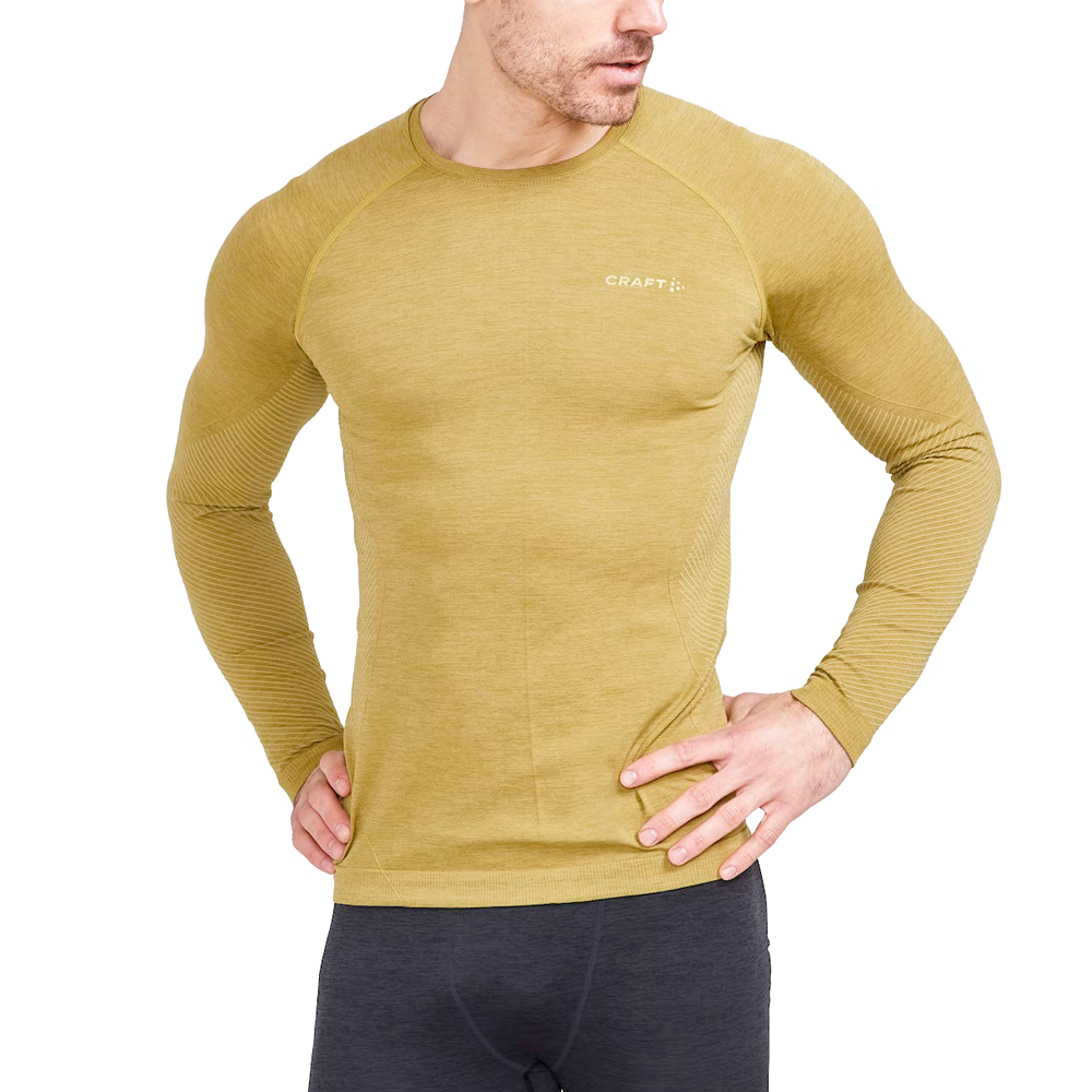 Dit Craft shirt lange mouw Dry Active Comfort Core algae heren heeft een nauwsluitende pasvorm en zorgt voor een hoog ademend vermogen. Het shirt is gemaakt van zachte, functionele en gerecycled materiaal. Een ideaal ondershirt tijdens de koude winterdagen.