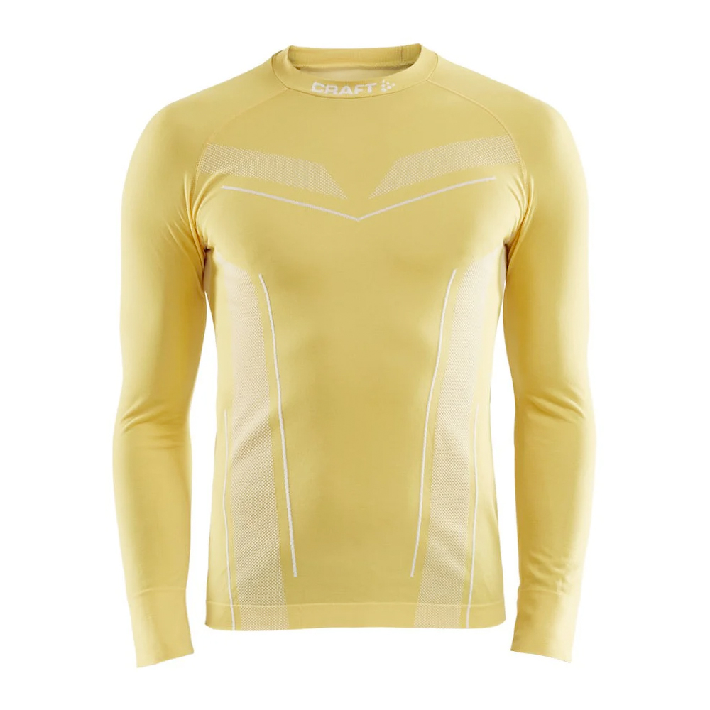 Dit Craft shirt lange mouw Pro Control yellow voor de heren zorgt voor een aangenaam droog en fris gevoel om het uiterste uit jezelf te kunnen halen. Deze gele heren baselayer zorgt voor een aangenaam warm gevoel tijdens de rust en verkoeling tijdens inspannende trainingen.