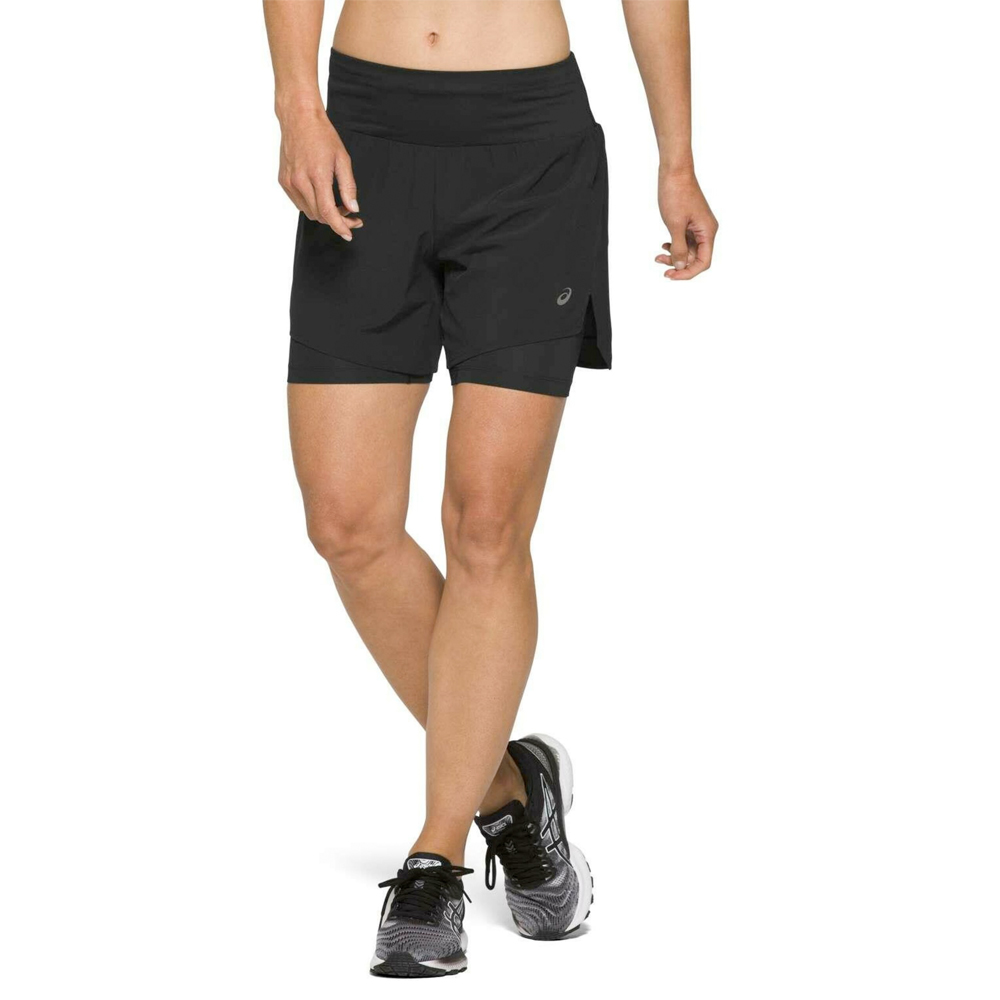 Asics 5.5-inch 2-in-1 hardloopshort Road black voor dames bevat een binnenbroek met nauwsluitende pasvorm voor extra bedekking en comfort. De buitenbroek heeft een los vallende pasvorm voor veel bewegingsvrijheid. Het materiaal voert vocht effectief af en heeft een goed ademend vermogen.