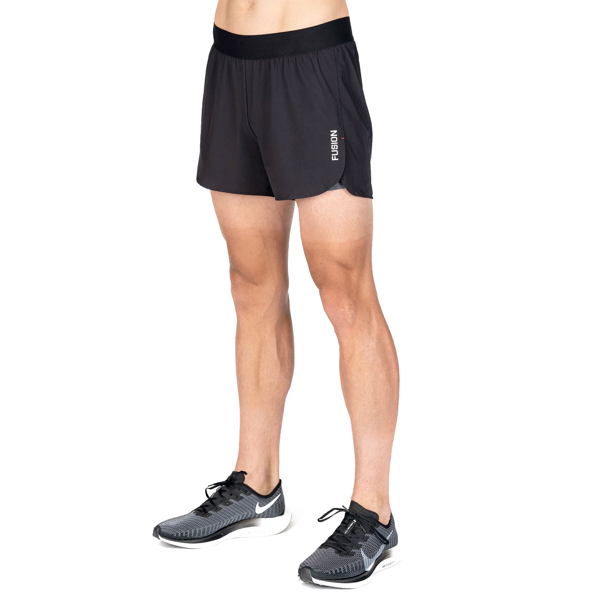 Deze Fusion 2-in 1 short Run black voor heren is een hoogwaardige lichtgewicht split-short met korte tight. Je kan je telefoon opbergen in de telefoonzakken.