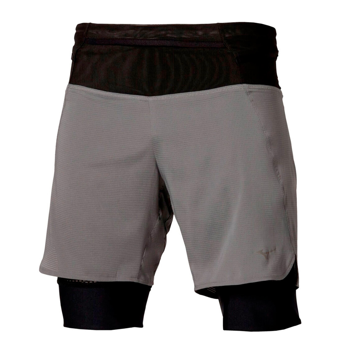 Deze Mizuno 2-in-1 short Trail Multipocket (Lava Smoke) voor heren is voorzien van een binnenbroek met rubberen randje en telefoonzak op het bovenbeen, trekkoord in de taille, een ritszakje aan de achterkant en 360° power mesh zakken waar je je spullen in kan opbergen.