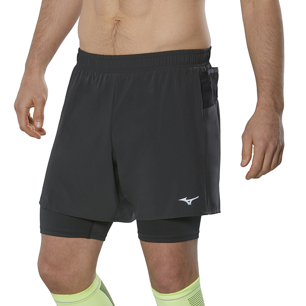 Deze Mizuno short 2-in 1 ER 5.5 black voor heren is gemaakt van een lichtgewicht stretchstof, die je veel bewegingsvrijheid en comfort geeft. De short is voorzien van 2 mesh zakken aan de achterkant, en een zakje met rits gemaakt van waterafstotend materiaal. De verstelbare tailleband zorgt ervoor dat je de short naar wens kan verstellen.