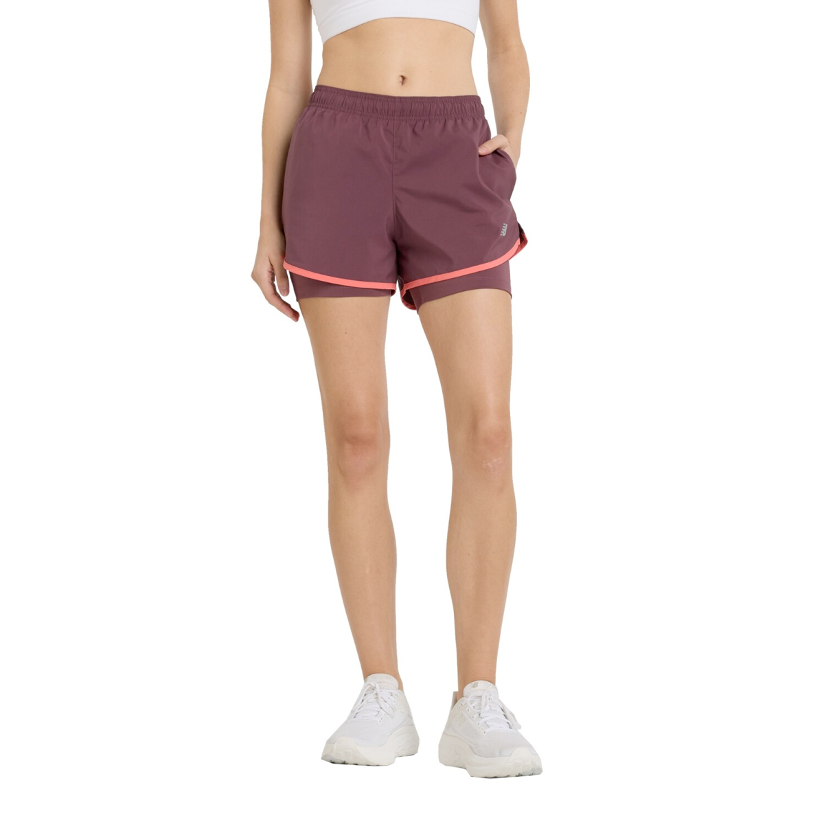 De New Balance 2-in-1 short Sport Essential 3-inch (FDP) dames met korte tight biedt het beste van beide werelden. Dankzij de NB DRY technologie geniet je van sneldrogend comfort doordat vocht effectief wordt afgevoerd. Deze short heeft een middelhoge taille voor een comfortabele pasvorm en is voorzien van twee handige steekzakken.