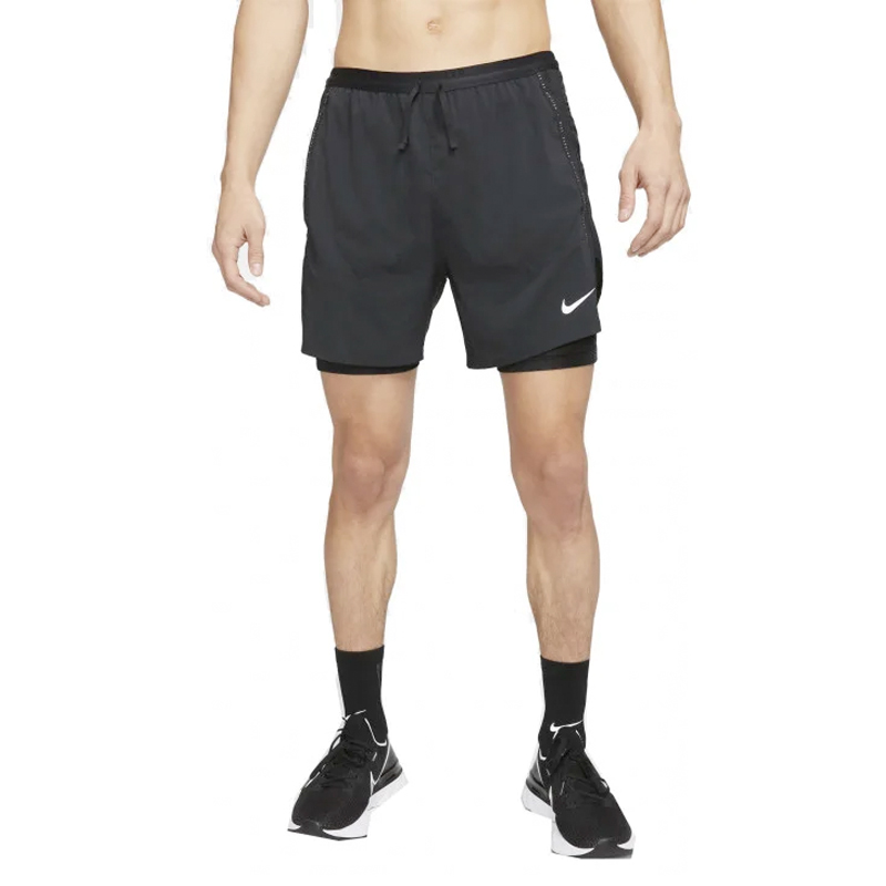 Nike 2-in 1 short Flex 5 inch black heren valt halverwege de bovenbenen is sneldrogend en ademend. Deze mannen hardloopshort heeft een handige binnentight, zodat de kans op schuren en irritaties verminderd.