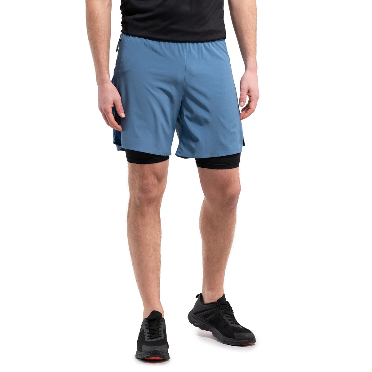 Deze Rukka short 2- in 1 Maaninka light blue voor heren heeft een elastische strakke binnen tight, met daarover heen een hardloop short. 4-way stretch materiaal rekt in alle richtingen, wat maximale bewegingsvrijheid biedt. Met een ritszak aan de zijkant voor sleutels.
