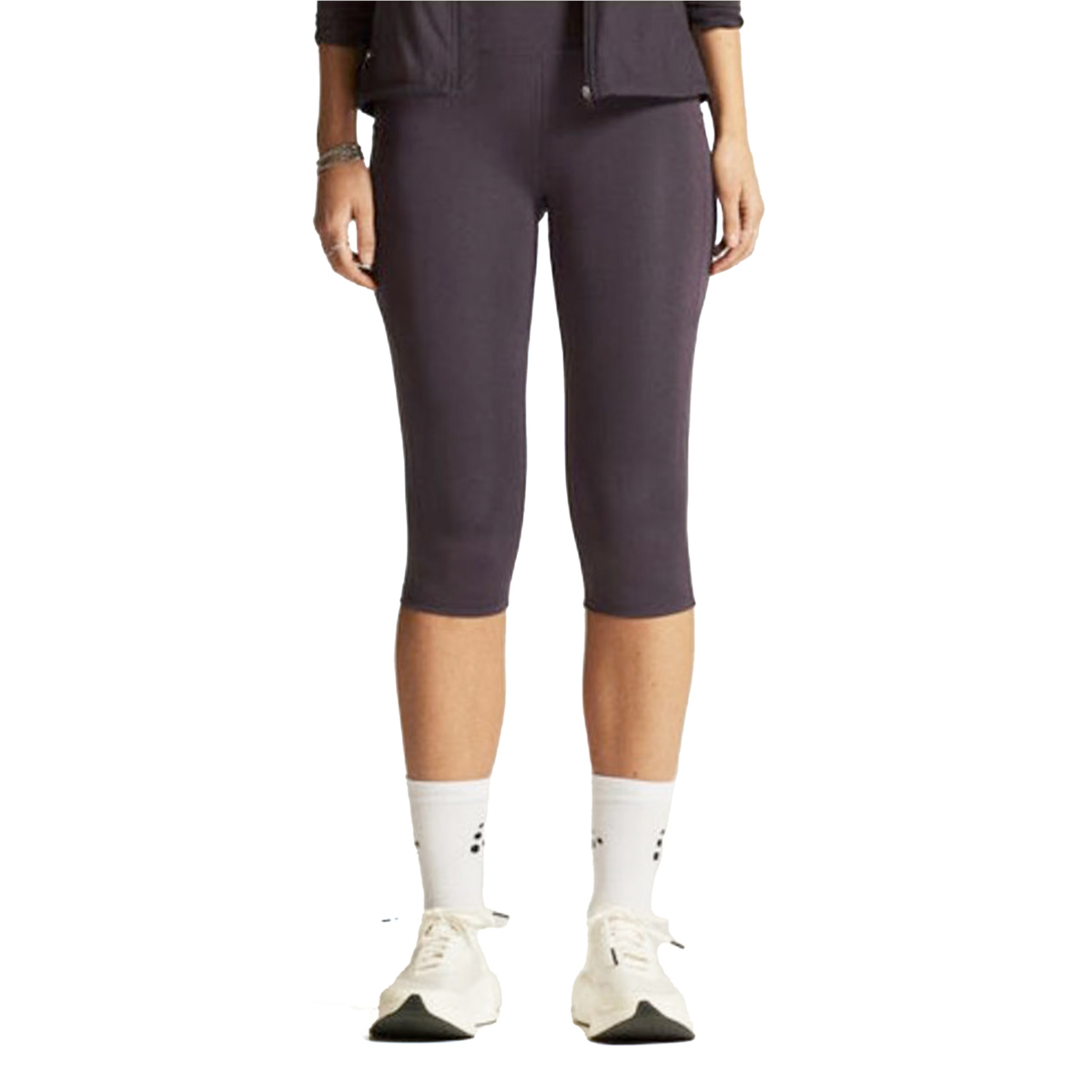 Deze Craft driekwart tight Adv Essence 2 (Dark Plum) voor dames heeft een brede, elastische tailleband en is gemaakt van rekbare functionele gerecyclede stof.