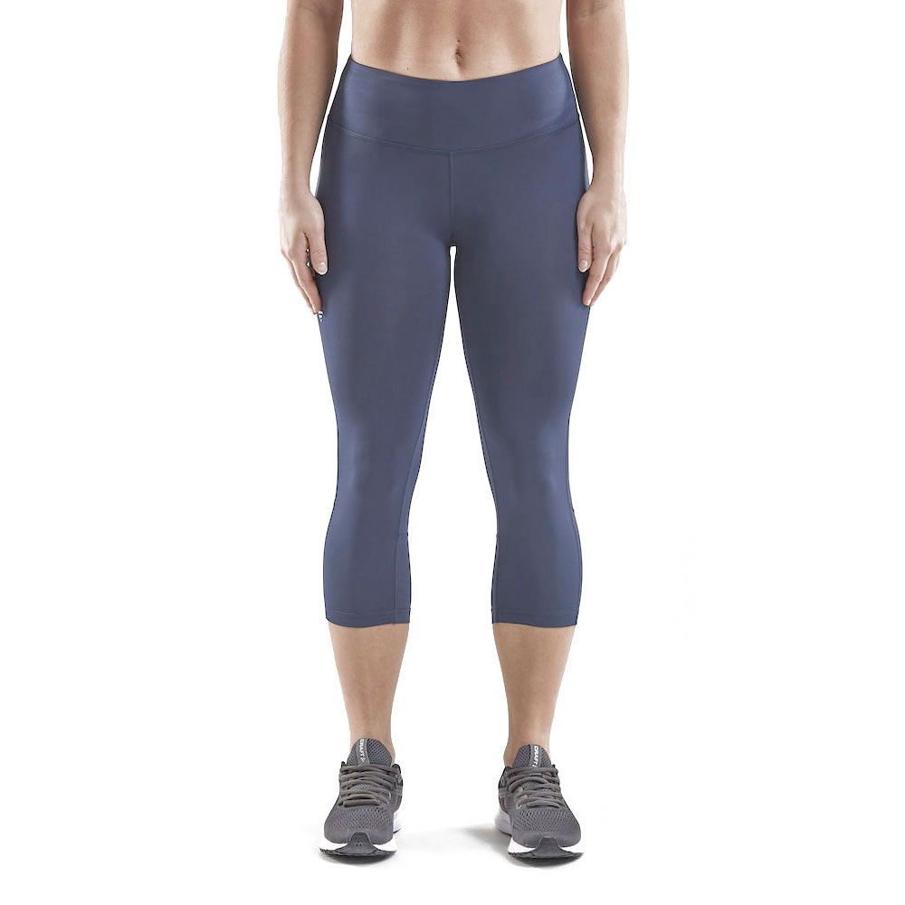 Deze Craft driekwart tight Rush navy dames heeft een brede, elastische tailleband en is gemaakt van rekbare functionele stof die zorgt voor efficiënt vochttransport en uitstekende bewegingsvrijheid.