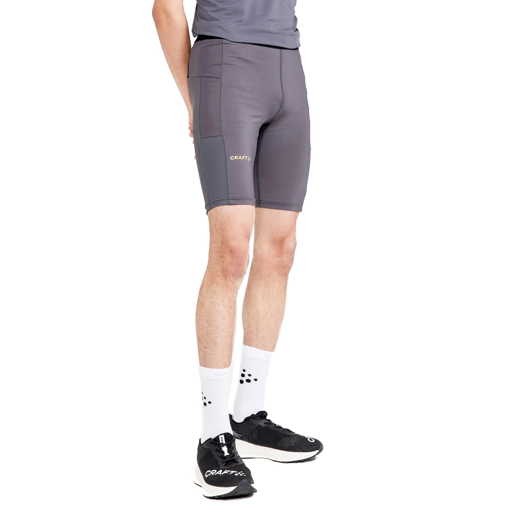 De Craft korte tight Pro Hypervent granite voor de heren is op dit moment een van de meest functionele hardloopbroeken op de markt. De tight is voorzien van hyperventilatie, oftewel veel plekken waar frisse lucht naar binnen kan. Dit verneem je aan de mesh zijpanelen. Daarbij is de broek gemaakt van ademend en sneldrogend materiaal.