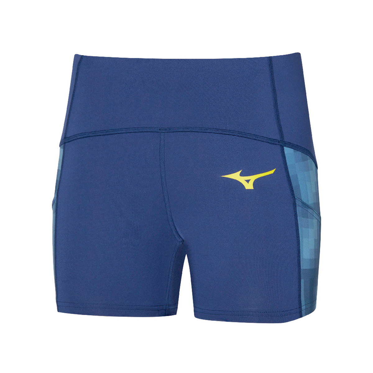 Deze Mizuno extra korte tight (Bellwether Blue) voor dames is een korte strakke hardloopbroek met twee zakjes op de bovenbenen voor gelletjes of tennisballen.