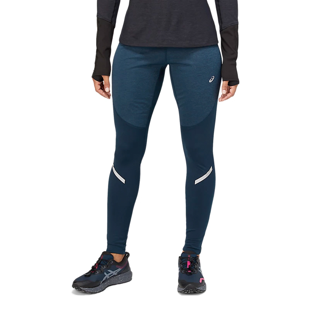 In de Asics lange tight Winter Lite-Show performance french blue dames ben je niet alleen goed zichtbaar door de reflecterende details, maar blijf je daarnaast ook warm door de drielaagse softshell buitenkant op de bovenbenen.