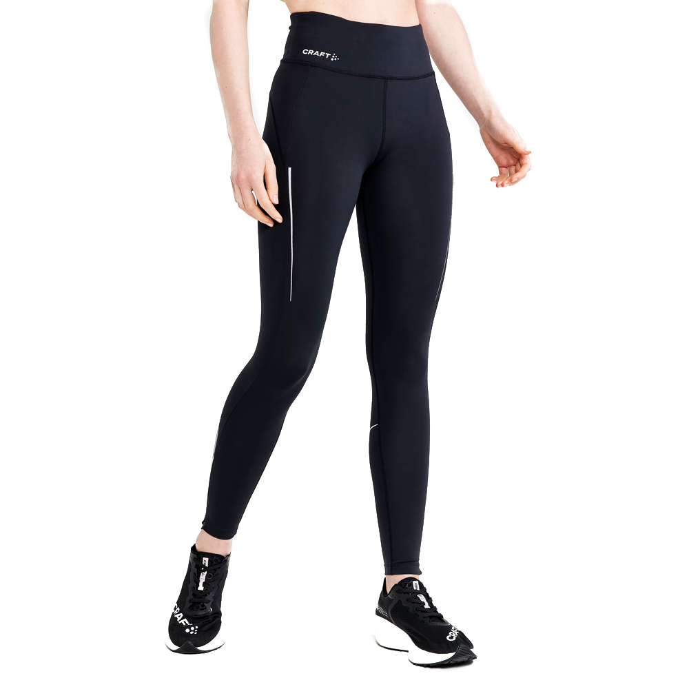 Craft lange tight Adv Essence black voor de dames is zeer rekbaar en biedt veel bewegingsvrijheid. Duurzaam door gebruik van 77% recycled materiaal wat zacht aanvoelt op de huid.