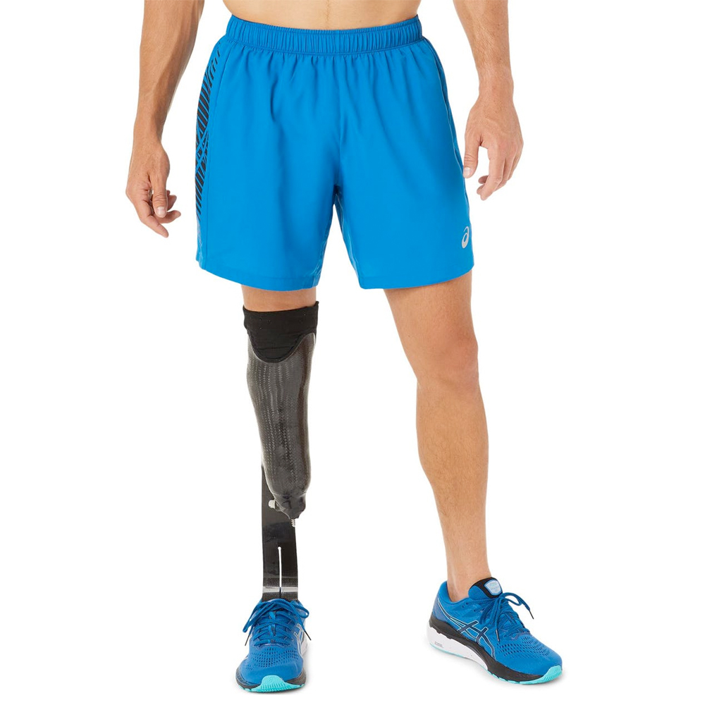 Asics short Icon 7-inch french lake drive voor heren is gemaakt van een lichtgewicht stof die is uitgerust met effectieve vochtafvoerende eigenschappen. Deze Asics sport short heeft een trekkoord in de taille voor een verstelbare pasvorm.