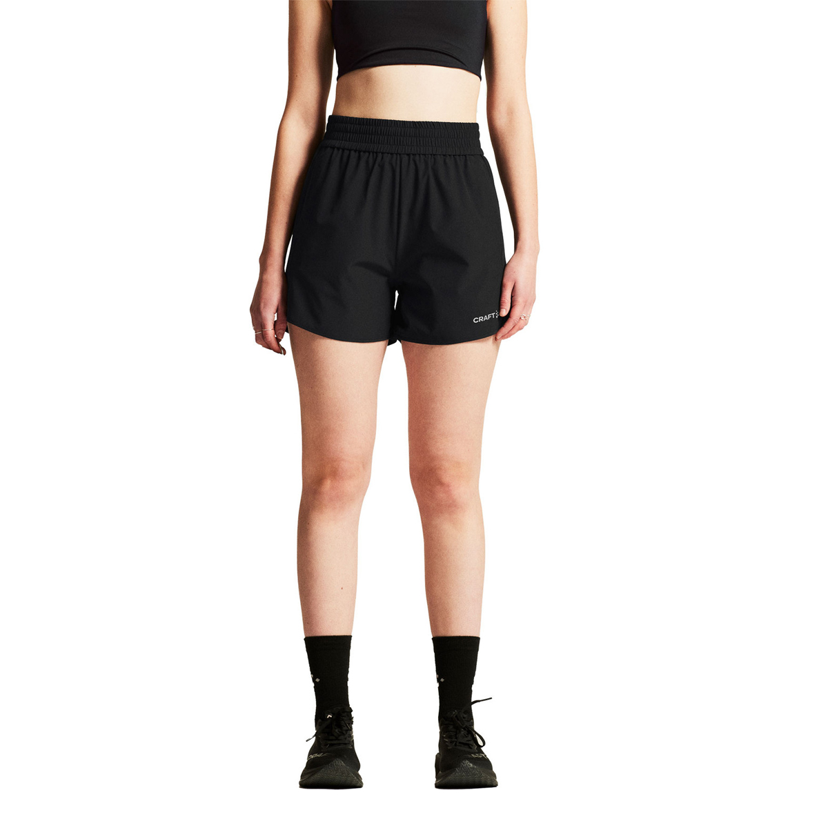 Craft short Core Essence 2 (Black) dames is een 5-inch sportbroekje met een goede pasvorm. Een hardloopshort zonder binnensbroekje maar met een elastische tailleband en trekkoord, als ook 2 schuine steekzakken.