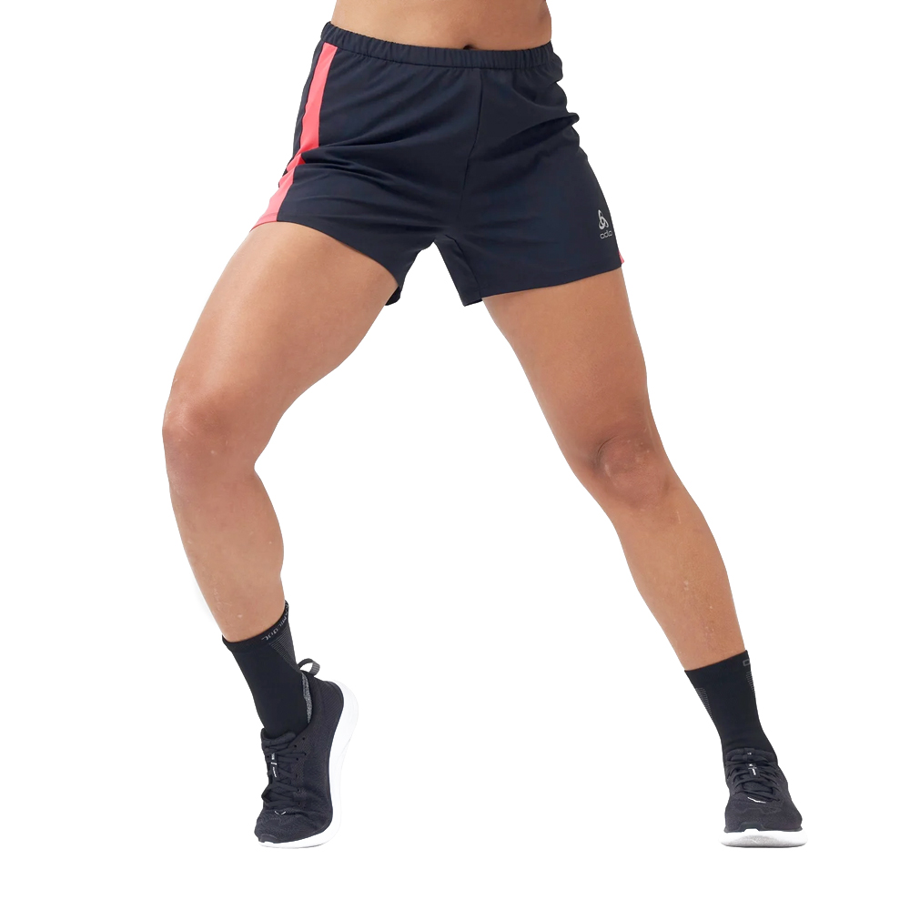 Deze Odlo short Essential 4-inch black/paradise pink dames is wijd en heeft geen binnenbroek. Speciaal ontworpen om tijdens het lopen vocht af te voeren zodat je droog en comfortabel blijft. De short is voorzien van een verstelbare tailleband, waardoor de pasvorm naar wens op maat gemaakt kan worden. Door de reflecterende details ben je goed zichtbaar in het donker.